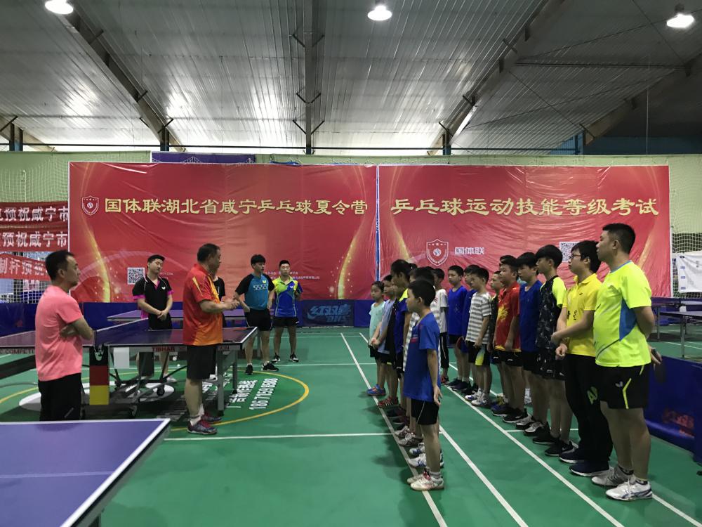 7月11日上午,由国体联考级平台主办,湖北省夺标体育文化传媒有限公司协办的国体联湖北省咸宁乒乓球夏令营,在湖北省咸宁市举行开营仪式。前国家队教练李晓东、队员谭瑞午亲临现场为学员量身定制训练计划。